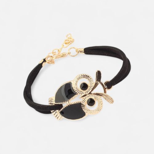Vigyél egy kis játékos eleganciát a mindennapjaidba ezzel az egyedi bagoly motívummal díszített karkötővel! Ez a darab a fekete és az arany klasszikus párosításával tűnik ki, így a letisztult női ékszerek kedvelőinek és a szimbolikus kiegészítők rajongóinak is nagy kedvence lesz.