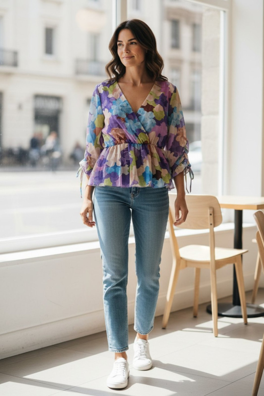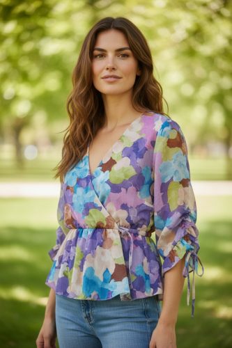 • Látványos fodrok: A rövid ujjon végigfutó, gazdag fodrozás mozgást és textúrát ad az öltözékednek, minimalizálva a kiegészítők szükségességét.