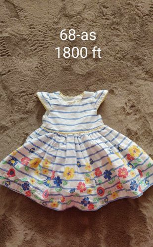 Eladó ez a gyönyörű, újszerű babaruha, mely tökéletes választás kislányod ruhatárának feldobására. A minőségi babaruha fehér színű, sötétkék csíkozással, a szoknyarészén pedig élénk sárga, kék és piros virágminták díszítik.