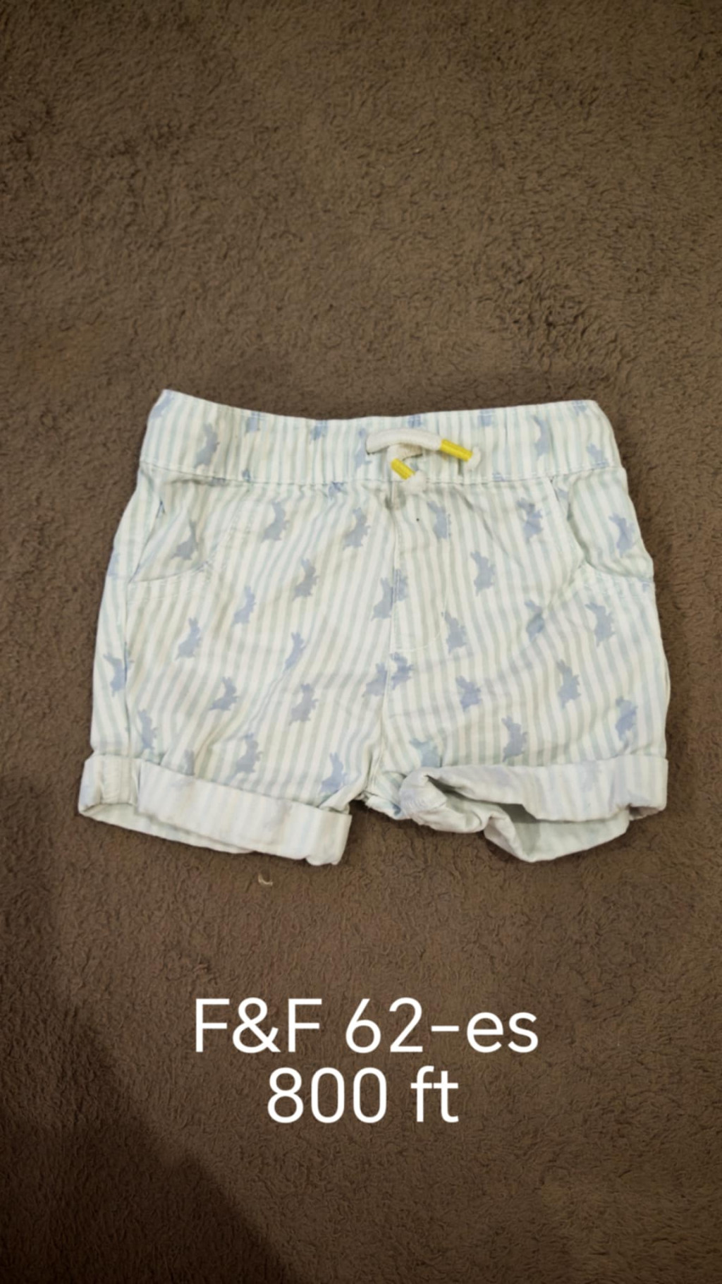 Ez a fehér alapú, kék mintás F&F baba rövidnadrág kényelmes és stílusos viselet a legkisebbeknek a melegebb napokon.