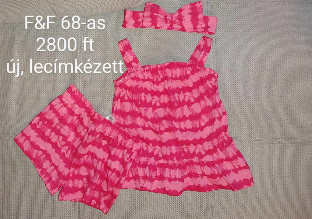 F&F 68-as pink mintás nyári szett hajpánttal – Prémium és újszerű babaruha