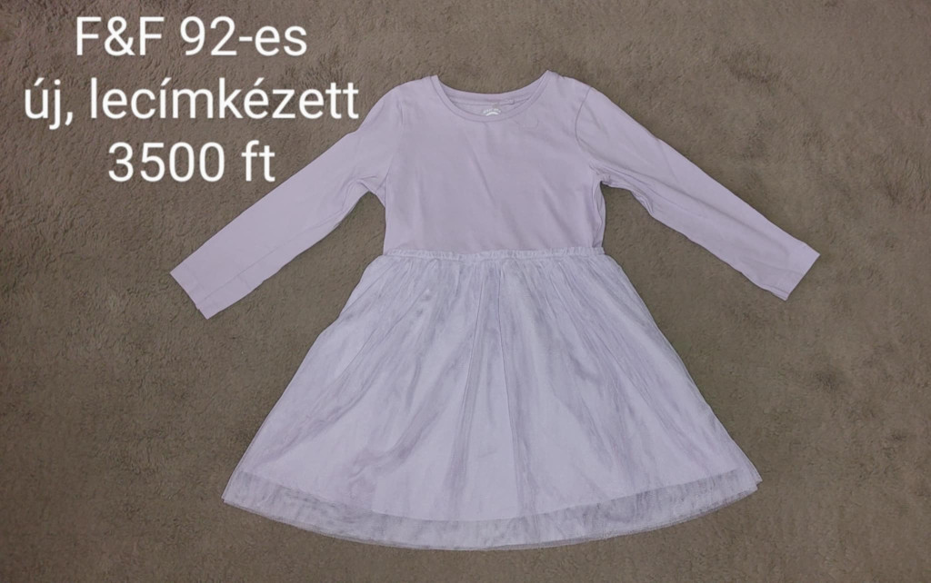 F&F lila hosszú ujjú tüllszoknyás ruha – 92-es méret (Új, címkés)