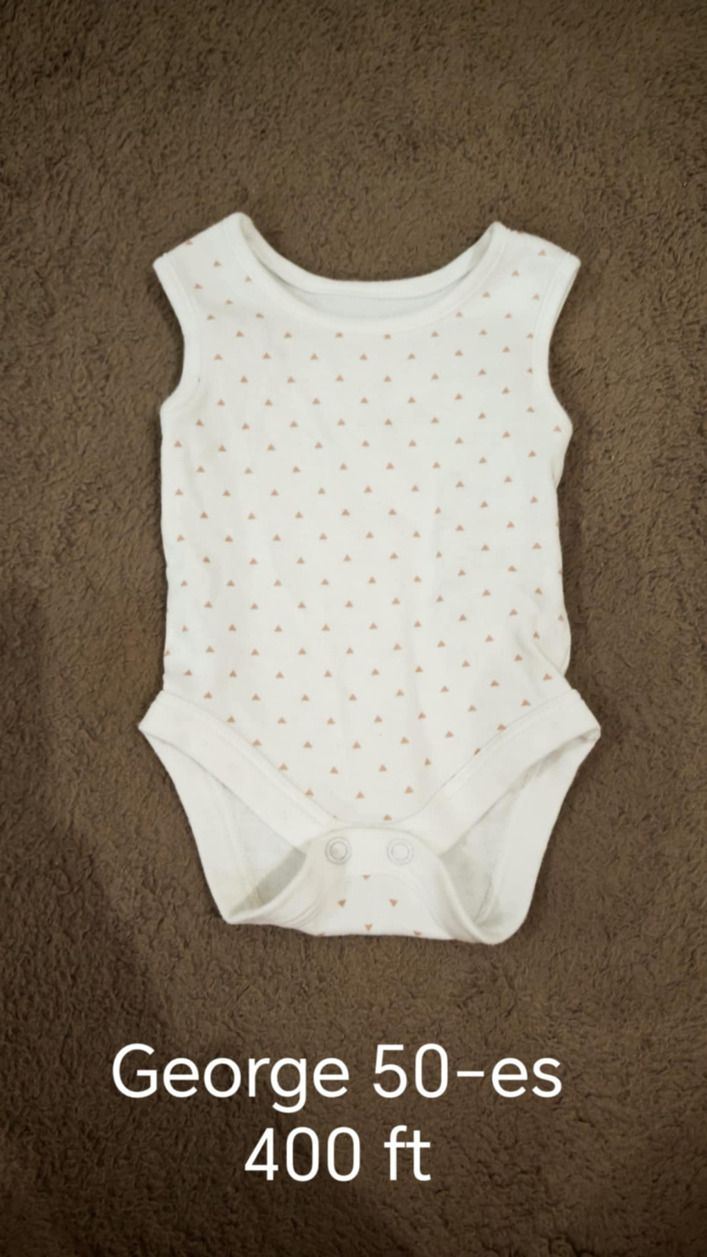 • Praktikum és stílus: Az 50-es méretű ujjatlan fazon ideális réteges öltözködéshez vagy a melegebb napokra. Ez a minőségi babaruha az egyszerűségével és bájos mintájával minden ruhatár alapköve lehet.