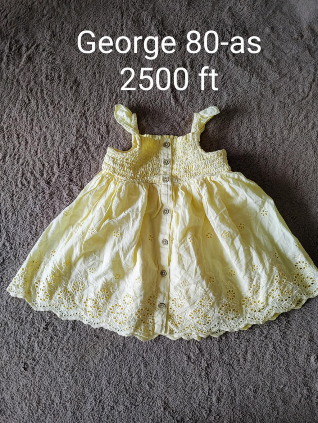 • Minőségi babaruha: A George márka híres a bababarát anyagairól. A ruha felső része gumírozott (smockolt), így kényelmesen illeszkedik, az alsó hímzett szegély pedig igazi prémium hatást kelt.
