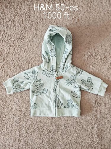 Ez a világoszöld (menta) árnyalatú, Disney Mickey Mouse mintás baba kapucnis pulóver (kardigán) stílusos és kényelmes választás a legkisebbeknek. A ruhadarab az H&M és a Disney együttműködéséből született kollekció része.