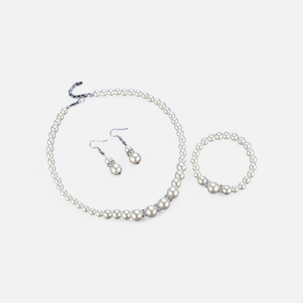 Vigyen időtlen eleganciát megjelenésébe ezzel a fenséges gyöngykollekcióval! Ez a letisztult női ékszer szett a hagyományos szépséget ötvözi a tudatos tervezéssel, ragyogó keretet adva viselőjének bármilyen különleges alkalomkor.