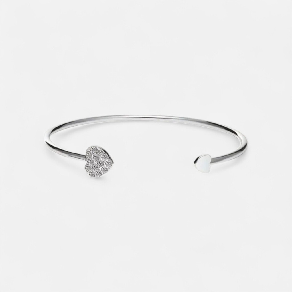 Köves Szív Ezüstszínű Merev Karkötő – Minimalista Romantika
