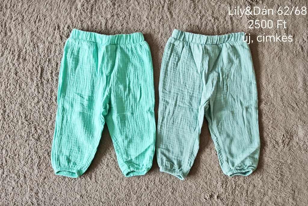 • Újszerű babaruha állapot: Ahogy a képen is látható, a nadrágok eredeti címkével rendelkeznek ("új, címkés"), így egy teljesen friss, érintetlen minőségi babaruha tulajdonosa lehetsz, töredék áron.