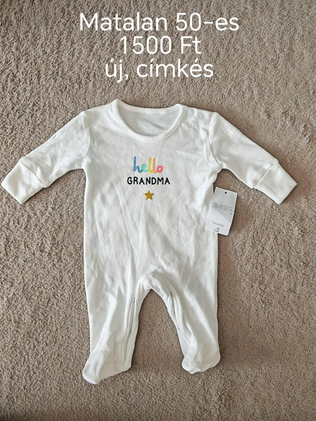 Készülsz a nagymama látogatására, vagy csak egy igazán különleges darabot keresel a legkisebb családtagnak? Ez a Matalan márkájú, hófehér minőségi babaruha a színes "hello GRANDMA" felirattal és egy apró arany csillaggal mindenki szívét megolvasztja. Mivel ez egy teljesen új, címkés darab, ajándéknak is tökéletes választás!