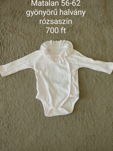 Ez az elegáns, finom kötésű Matalan body minden kisbaba ruhatárát feldobja. Ha egy igazán különleges és minőségi babaruha az, amit keresel, ez a fodros nyakú darab tökéletes választás. A halványrózsaszín árnyalat és a gombos kialakítás egyszerre teszi praktikussá és ünnepivé, miközben állapotát tekintve egyértelműen egy újszerű babaruha.