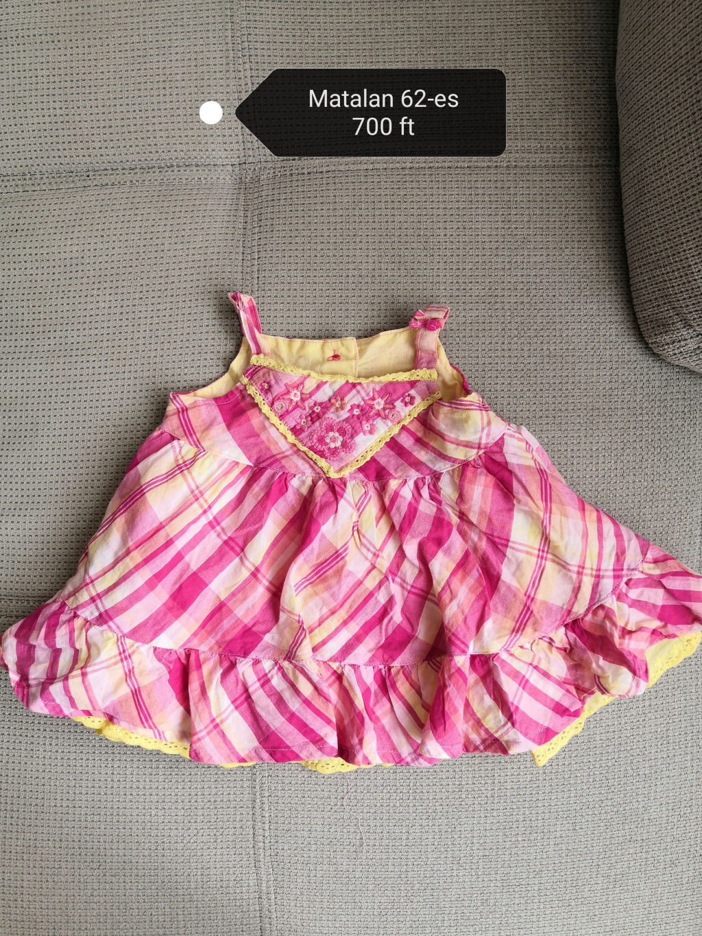 Vidd bele a színeket a hétköznapokba ezzel a vidám, pink és sárga kockás ruhácskával! Ez a Matalan márkájú minőségi babaruha a mellrészén található különleges hímzéssel és az alján lévő sárga csipkeszegéllyel igazi különlegesség. A könnyű pamutvászon anyag és a lenge szabás miatt tökéletes választás a meleg nyári napokra.