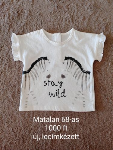 Matalan zebrás "Stay Wild" fodros póló – 68-as méret
