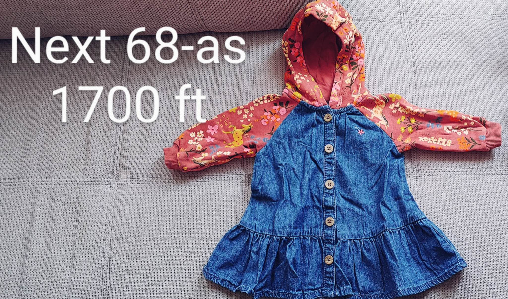 • Minőségi babaruha: A Next márkától megszokott prémium anyaghasználat. A farmer rész formatartó, a mintás ujjak pedig puhák, így a baba szabadon mozoghat benne.