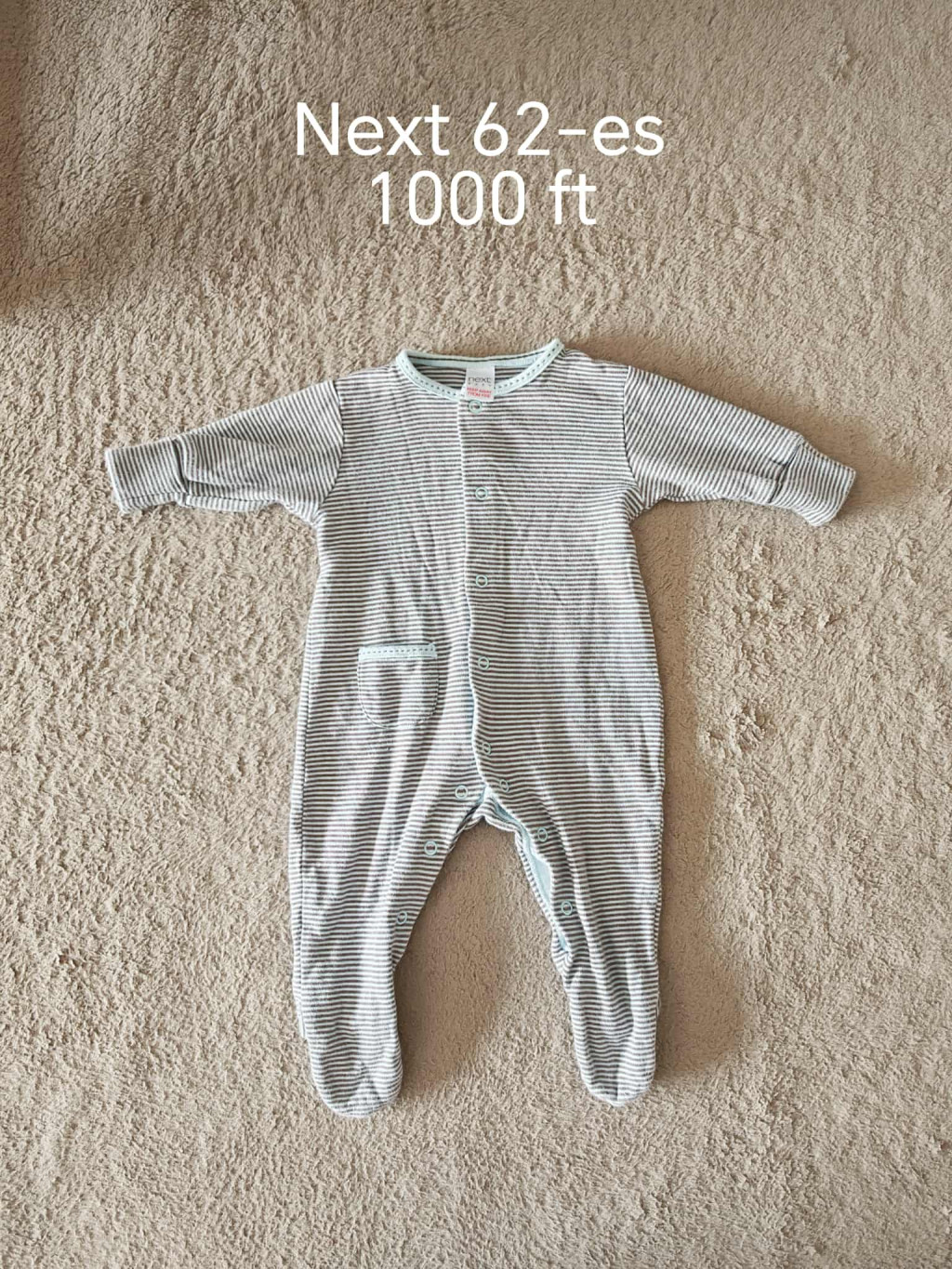 • Márka és méret: Next márkájú, 62-es méret (kb. 0-3 hónapos korig ajánlott).