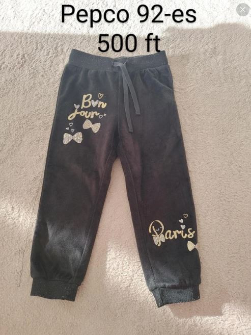 Keresel egy kényelmes, mégis csajos nadrágot a hétköznapokra? Ez a sötétszürke/fekete alapú, aranyszínű „Bonjour Paris” felirattal és masnikkal díszített Pepco szabadidőnadrág tökéletes választás. Ha a kényelem mellett a stílus is fontos, ez a használt babaruha alapdarabja lesz a kislányod ruhatárának.
