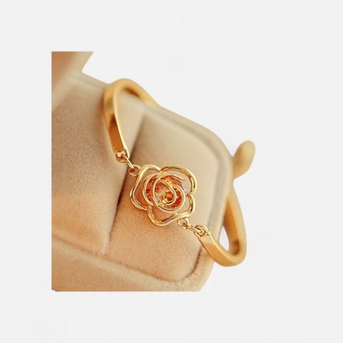 Rózsa Motívumos Aranyozott Félmerev Karkötő – A Geometrikus Elegancia
