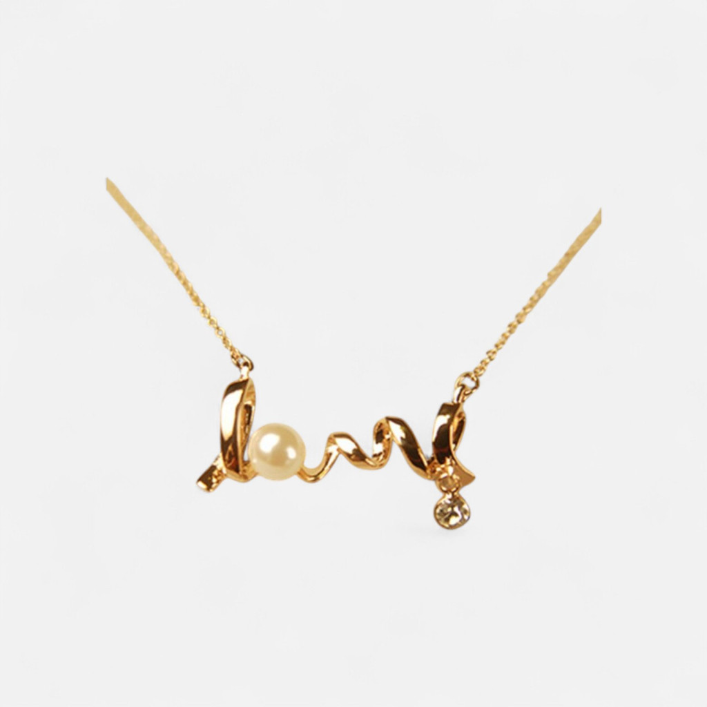 Fejezze ki érzéseit ezzel a bűbájos, arany tónusú nyaklánccal, amely a romantika és a stílus ötvözete. Ez az elegáns kristályos női ékszer egy finom gyönggyel és egy csillogó kristállyal kiegészítve teszi teljessé a "Love" feliratot, így válva tökéletes kiegészítővé minden hölgy számára, aki kedveli a letisztult női ékszereket.