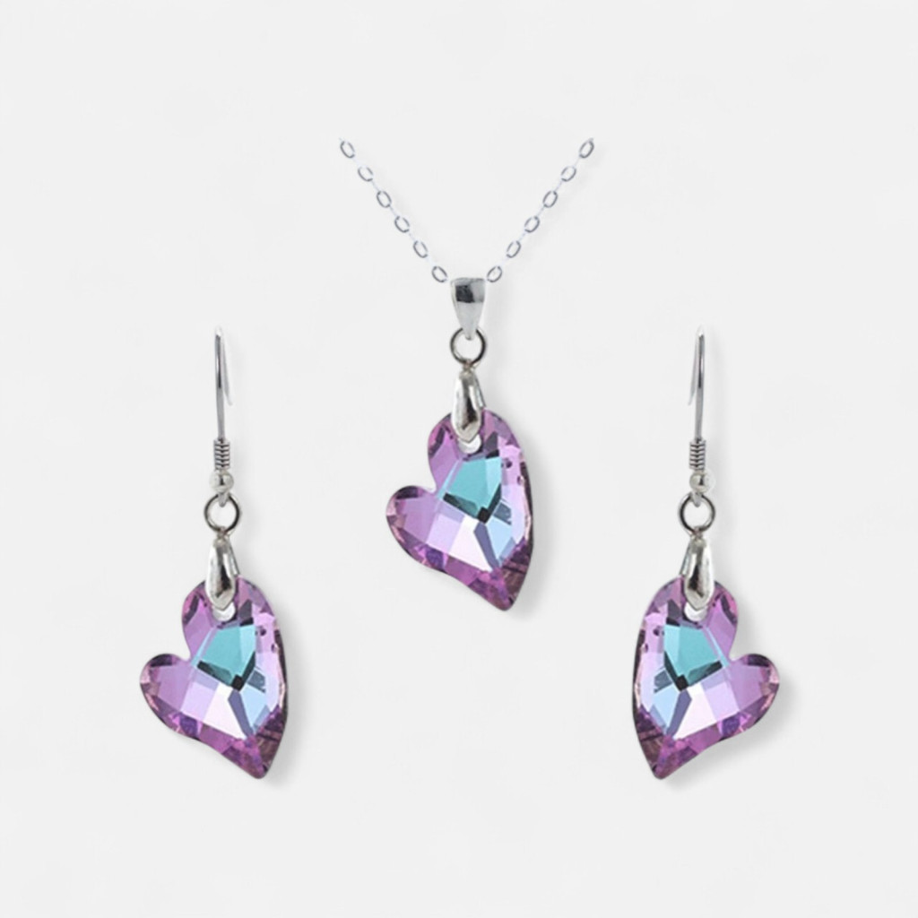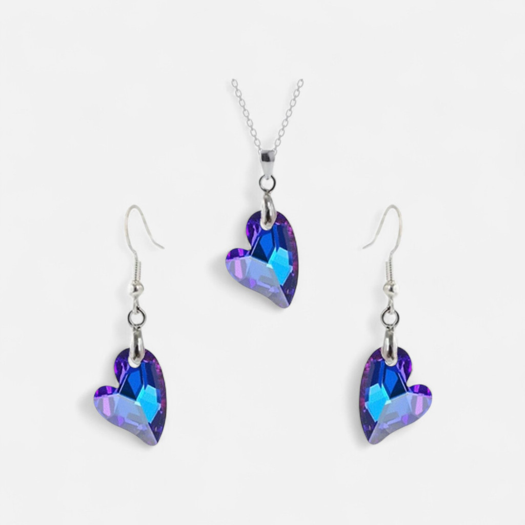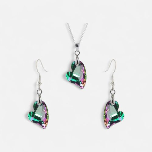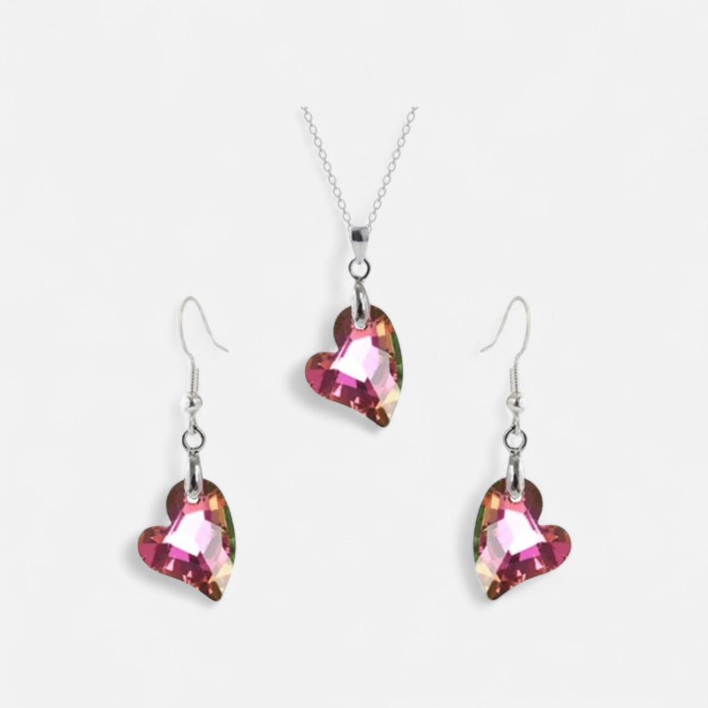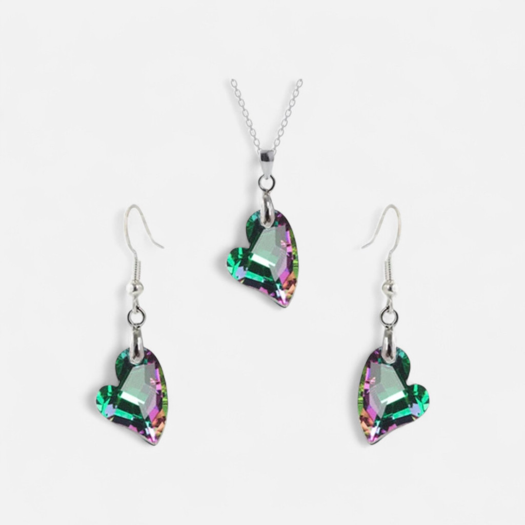 • Elegáns kristályos női ékszerek: A szív alakú csiszolás és a speciális bevonat különleges vibrálást ad a szettnek.