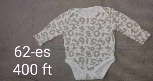 Ez a minőségi babaruha egy fehér alapszínű, szürke számjegyekkel díszített, hosszú ujjú body. A termék újszerű babaruha, amely kiváló esztétikai állapotban van, megőrizve eredeti puhaságát.