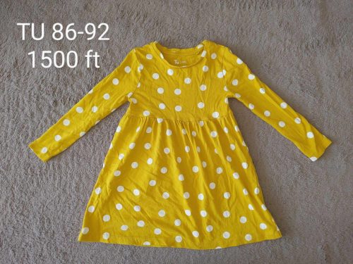 Vidám Mustársárga Pöttyös Ruha – Minőségi Babaruha a Fenntarthatóság Jegyében